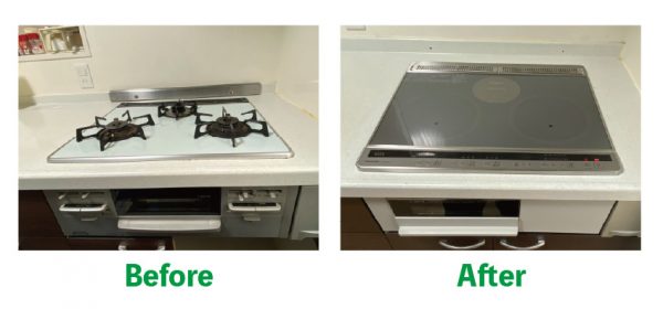 コンロは、これまでのガスコンロから IHクッキングヒーター へ変更。