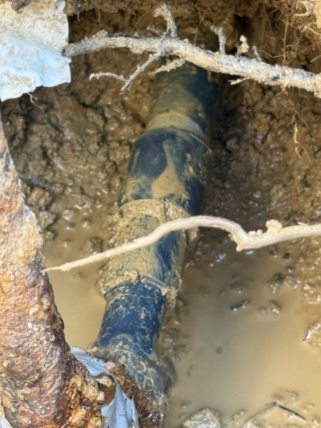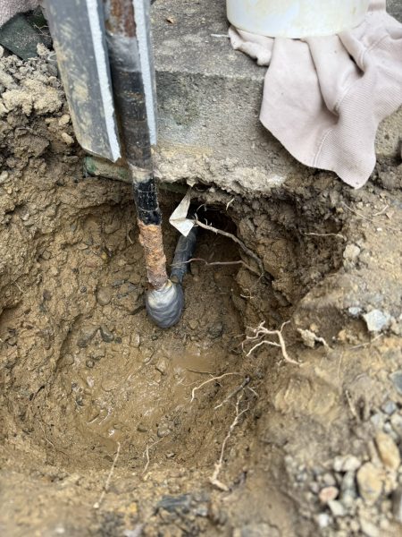 現場を確認すると、地中の古い鉄管が腐食して損傷し、そこから漏水が発生していました。