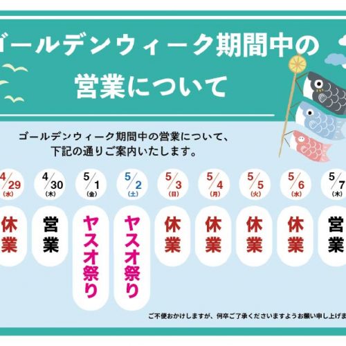 2026/4/24ゴールデンウィーク 休業のお知らせ